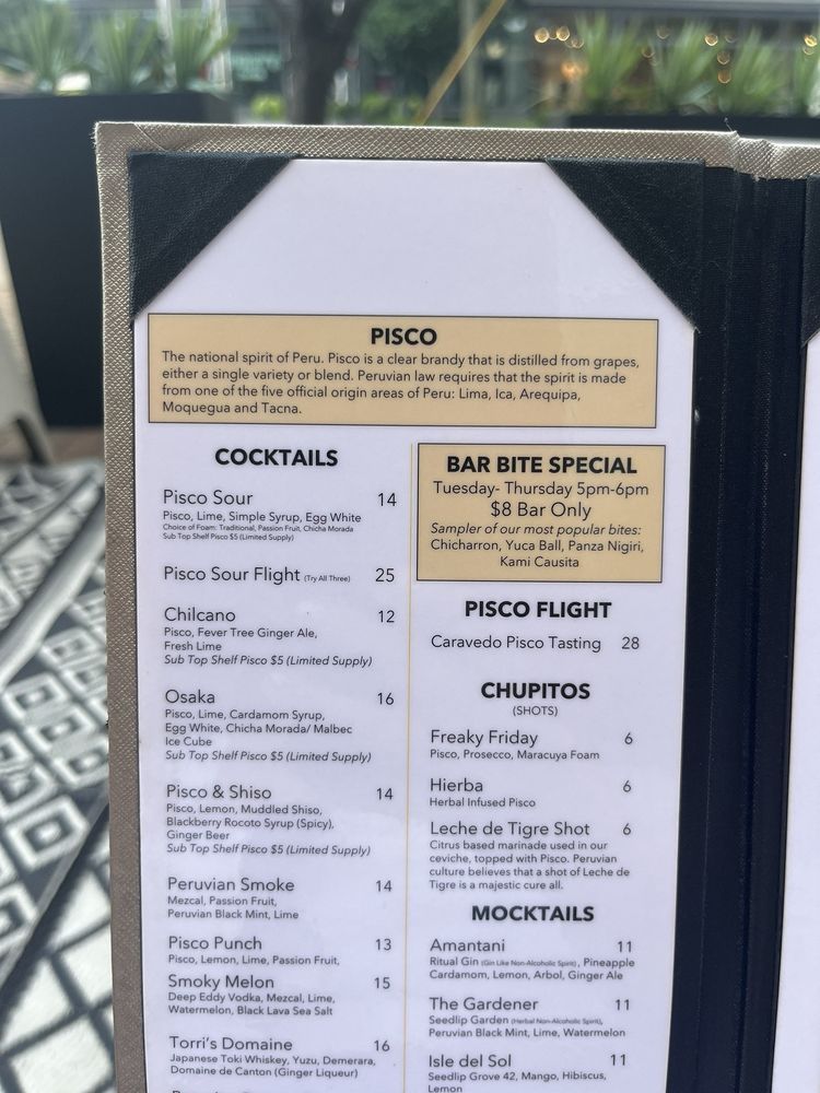 Pisco, Lime, Cardamom Syrup, Egg White, Chicha Morada/ Malbec Ice Cube | Sub Top Shelf Pisco $ (Limited Supply)