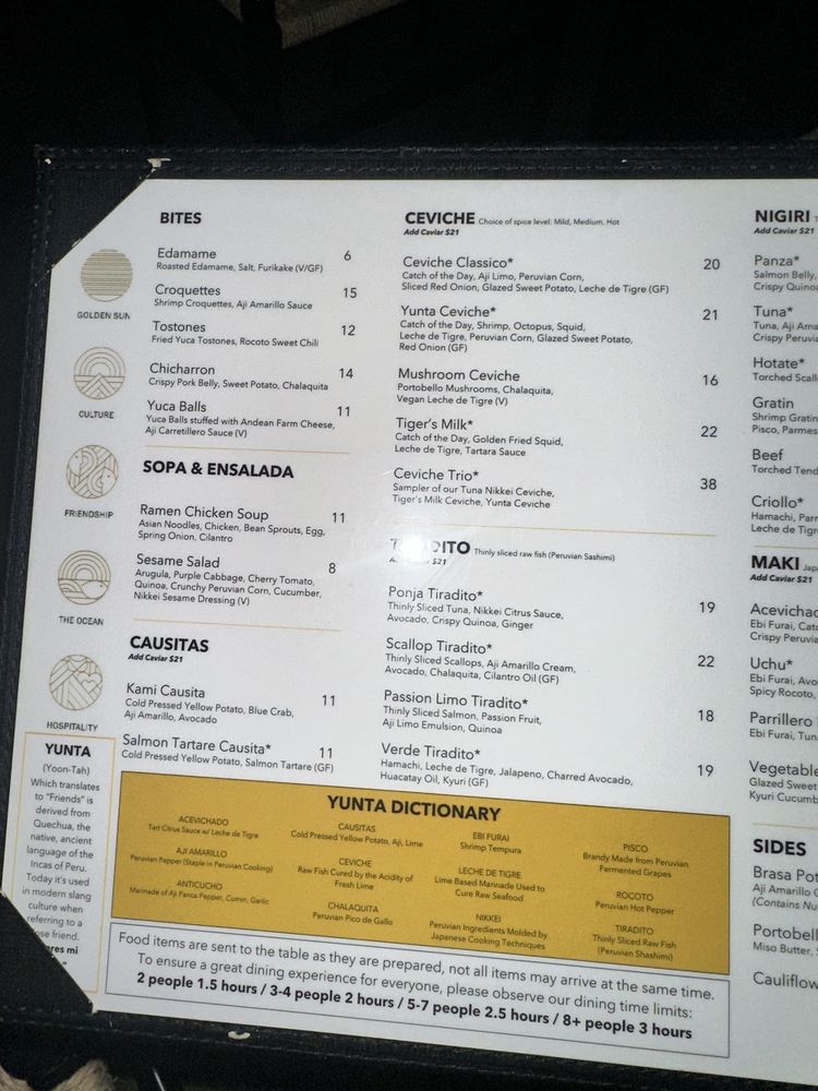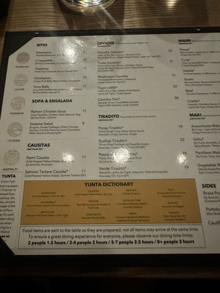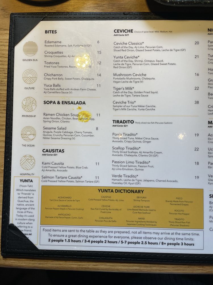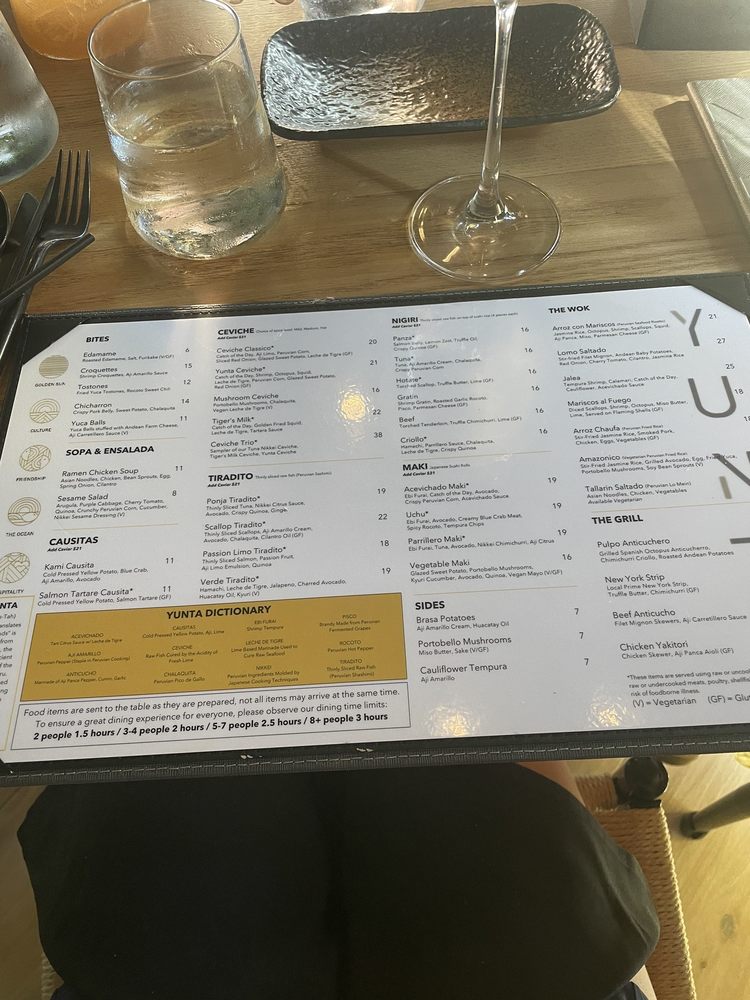 Yunta Nikkei in Charlotte offers a unique fusion of Peruvian and Japanese cuisine, creating a trendy and upscale dining experience. With options for pescatarians, outdoor seating, and a full bar, it's perfect for a special night out. The menu features a variety of ceviches, sushi rolls, and flavorful entrees like Arroz con Mariscos with octopus, squid, shrimp, and scallops. The service is top-notch, with attentive waitstaff like Carlos R and Daniel providing excellent recommendations. The ambiance is intimate and romantic, making it ideal for dates. Customers rave about the delicious dishes like tigers milk ceviche, gratin nigiri, and passion fruit crème brûlée. Yunta Nikkei provides a delightful culinary experience with a perfect blend of Peruvian and Japanese flavors.